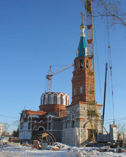 2 апреля на главном куполе Успенского собора установили православный крест. Его высота – 11 метров. Таким образом, главный христианский символ вознесен над Омском на высоту почти 70 метров. Крест был изготовлен на одном из омских предприятий в точности по чертежам разрушенного храма.