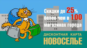 Обладатели дисконтной карты получают возможность купить необходимые товары и услуги со значительной скидкой от 3 до 25%. Учитывая, что по одной карте можно приобрести самые разнообразные услуги и товары для обустройства дома или квартиры – от дизайн-проекта квартиры до бытовой техники, суммы , сэкономленной на сделанных по дисконтной карте «Новоселье» покупках, вполне может хватить на празднование настоящего НОВОСЕЛЬЯ. По всем интересующим вопросам можно обратиться по тел. 67-31-95, Тамбовцева Мария – руководитель проекта.