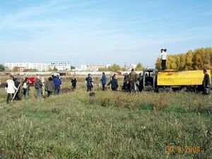 На фото (С) В.Корб, www.rmx.ru: закладка аллеи памяти журналистов в Парке 300-летия Омска, 2004 год