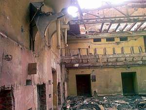 Фото (С) И.Басов, предоставлено ИА "ДО-инфо": вверху - остатки зрительного зала, внизу - вид на к/т "Пионер" и особняк по Ильинской, 3 за ним