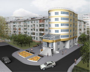 За необычное архитектурное, градостроительное и цветовое решение проект получил название "Жемчужина". В настоящее время закончено возведение первого и ведется кладка второго этажа здания. Согласно проекту, новое строение представляет собой изолированную жилую вставку между двумя 5-этажными жилыми домами. При этом "Жемчужина" будет вплотную примыкать к соседним зданиям и, по замыслу проектировщиков, находиться в надежной защищенной "раковине". Для отделки фасадов застройщик применит лицевой желтый и силикатный белый кирпич, цоколь и первый этаж будут отделаны светло-серым фактурным рваным камнем.