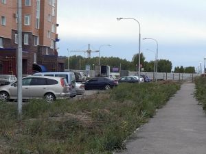 На фото (С) А.Пальшин, www.skyscrapercity.com: двор в мкр. "Кристалл" с огороженной парковкой
