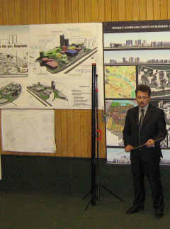 7 ноября Омский градсовет в очередной раз обсудил проект по застройке территории торгового комплекса "Ярмарка "ПАНОРАМА-ЦЕНТР". Учтя замечания двух предыдущих советов, авторы концепции, специалисты ООО "Архбюро-91", расширили границы проектирования и разработали эскиз также для территории соседних с ярмаркой участков. Директор проектного института Андрей Косолапов сообщил, что визуально территория состоит из трех линий застройки. На первой линии разместятся, в основном, объекты торгового назначения, на второй - два многоярусных паркинга, на третьей - реконструируемый под досуговый центр корпус 8-го кирпичного завода. На 3-й линии предполагается построить и офисное здание, которое в качестве высотной доминанты "организует" всю планируемую застройку.