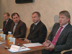 На фото: Андрей Компанейщиков (генеральный директор ОАО "Омское ипотечное агентство"), Павел Кручинский, Александр Тарасов, Владислав Луцков (МИЭЛЬ, Москва)