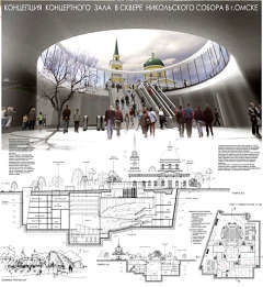 В этом году Омск завоевал три награды архитектурного фестиваля Сибири, главная из которых - премия "Золотая капитель" - досталась работе ТПИ "Омскгражданпроект" за концепцию "Концертный зал в сквере Никольского собора в Омске" (архитектор - Андрей Сергеев). Оригинальность этой концепции в том, что ее автор предлагает перенести концертный зал под землю, максимально разгрузив наземное пространство.
