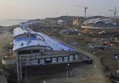 В активной фазе развернуты работы на главном здании – океанариуме с дельфинарием. На этом объекте смонтировано более 1700 тонн металлоконструкций, покрыто огнезащитным материалом свыше 26 тысяч квадратных метров поверхности кровли. "До конца ноября мы планируем закрыть тепловой контур крыши, – рассказывает Юрий Петрище, начальник СМУ-2 НПО "Мостовик". – Осталось смонтировать порядка 300 тонн металлоконструкций третьего блока океанариума и закончить устройство покрывного листа".