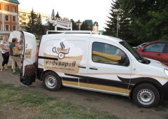 В Омске развивается сеть мобильных кофеен "КофевароФФ". К концу июля на улицы города выйдет третий фирменный фургон. Стоимость свежесваренного кофе "с колес" ниже аналогов в стационарных кофейнях, а его приготовление занимает не более 3 минут.