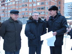 На стройплощадке Оркиш рассказал, что до 15 декабря компания планирует полностью возвести коробку здания, до конца года сделать кровлю и начать монтаж навесного фасада. Замминистра строительства Юрий Ерехинский посчитал этот график слишком амбициозным. Узнав, что объем кирпичной кладки составляет 1 тысяча 800 кубических метров он заявил, что в "природе такого никогда не было". Не убедил чиновника и тот факт, что этот строительный объем компания намерена распределить между тремя кранами. "На бутылку коньяка спорю, что не сможете", - сказал Ерехинский. "Эта бригада за два месяца восьмиэтажный дом на улице Химиков, 17 построила", - предпринял последнюю попытку убедить замминистра Оркиш. Он также добавил, что сейчас на объекте работают 63 человека, из них 32 – это каменщики.