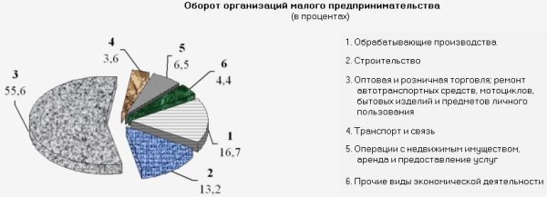 Как сообщает Омскстат, в январе-марте 2008 года в Омской области в торговле функционировало 22% организаций малого предпринимательства, в обрабатывающих производствах - 18% и в строительстве - 16%. Средняя численность работников в таких организациях в первом квартале текущего года составила 76066 человек, или 12% численности работников организаций всего региона. Большинство из них - 23% - занято в организациях обрабатывающих производств, чуть меньше в торговле - 18% и строительстве – 17%.